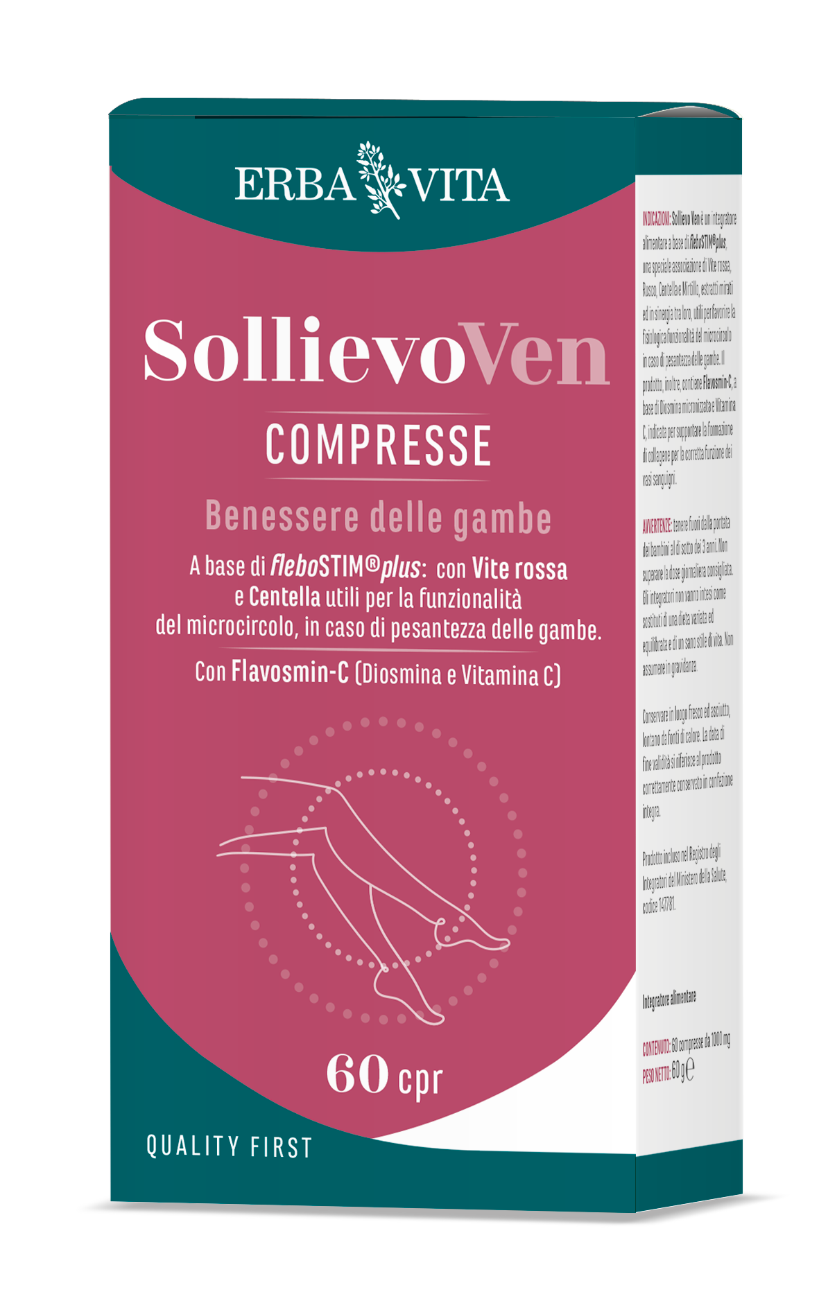 The problem of swollen and heavy legs is caused by venous stasis: when the veins of the lower limbs have less elasticity and cannot return the blood to the heart, a stagnation is created. Sollievo Venis is a complete line to help the microcirculation and to give relief to the heavy and tired legs, with also cream products and anti-fatigue, refreshing spray.